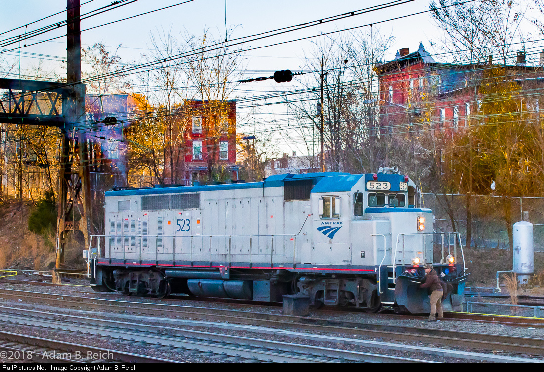 RailPictures.Net Photo: AMTK 523 Amtrak EMD GP38H-3 at Trenton, New Jersey by Adam B. Reich