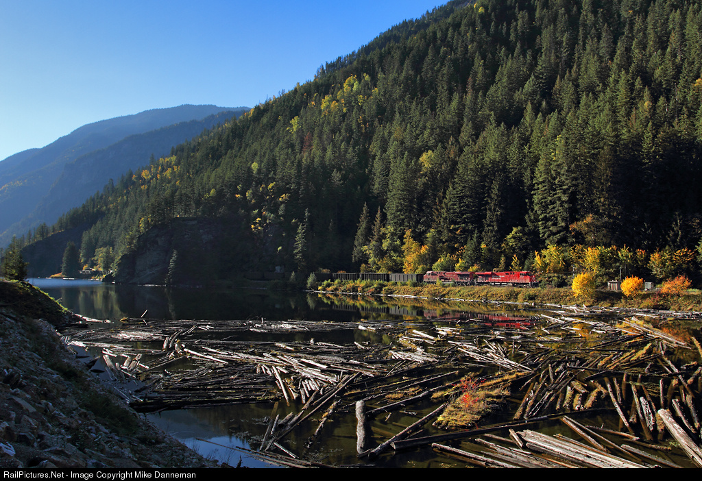 Canadian Pacific coal train No. 840 passes through the tunnels just west of the end of double track at Clanwilliam, British Columbia, on September 29, 2015. Clanwilliam is just under nine miles west of the crew change point of Revelstoke on CP’s Shuswap Subdivision.