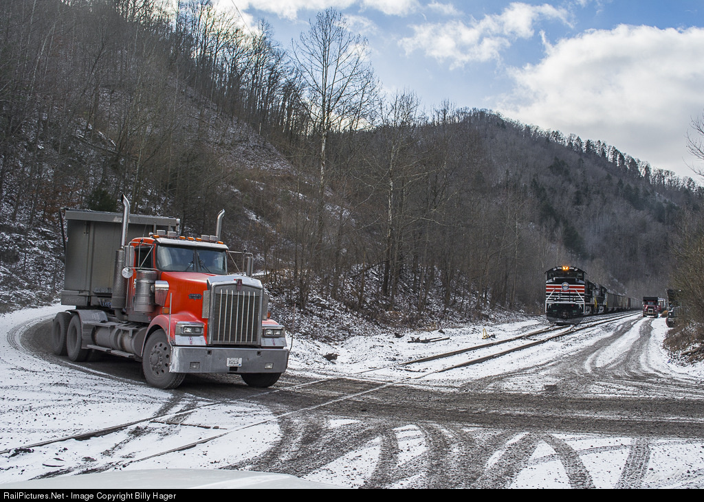 Rolling coal and flood loading coal! A coal truck has just dumped his load at the Apex Mining site at Kyber, as U53 prepares to cut away to run around their train to start flood loading system hoppers at the Kyber loadout around the corner. The Southern Pacific Heritage Unit is in a strange place as the lead engine for the move up to Kyber from Weller Yard.