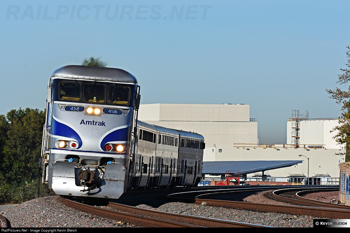 Leaning in to the curve just west of the Buena Park Metrolink station, Amtrak F59PHI #450 leads its southbound Pacific Surfliner train towards San Diego.