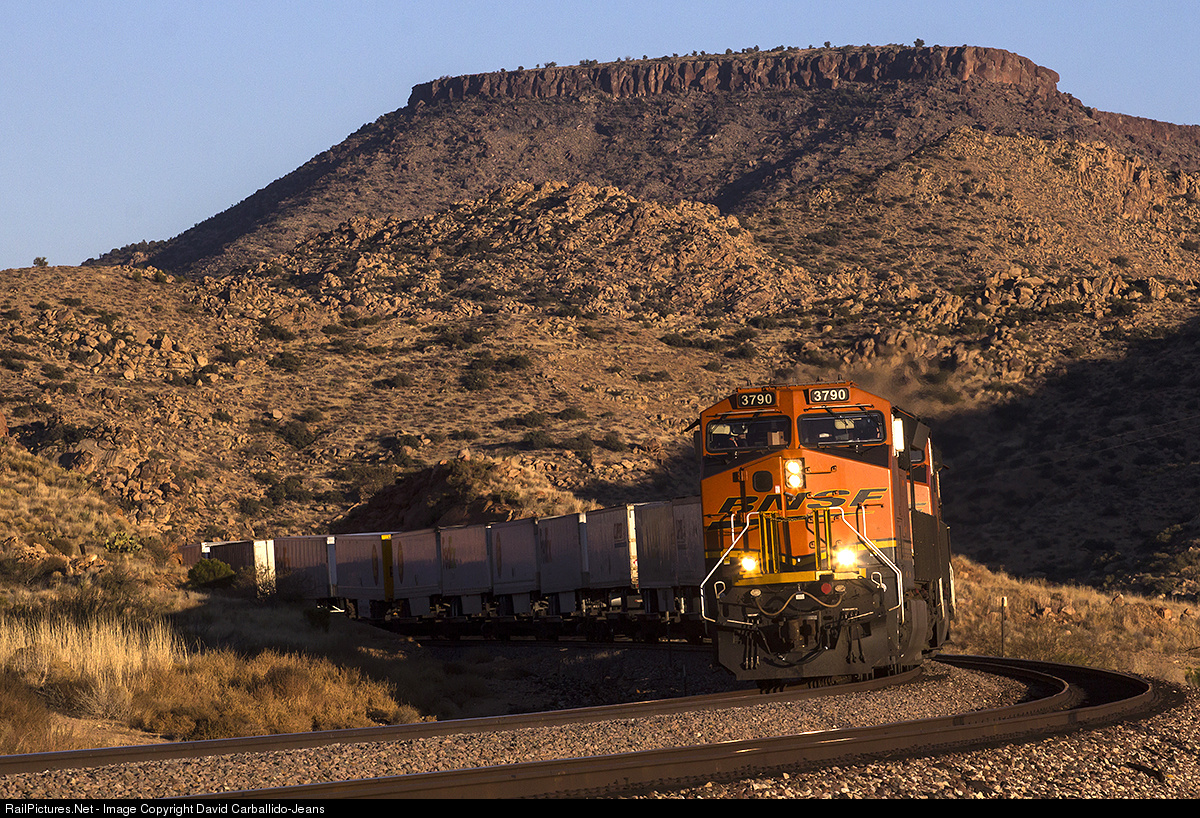 As the UPS peak seasons gets near Christmas, BNSF runs a parade of high priority Z-trains throughout the day, making sure nothing is in their way. Here, BNSF 3790 pulls one of those hot trains through Hackberry as they notch up after overtaking a slower, and lower priority, manifest train at Valentine.
