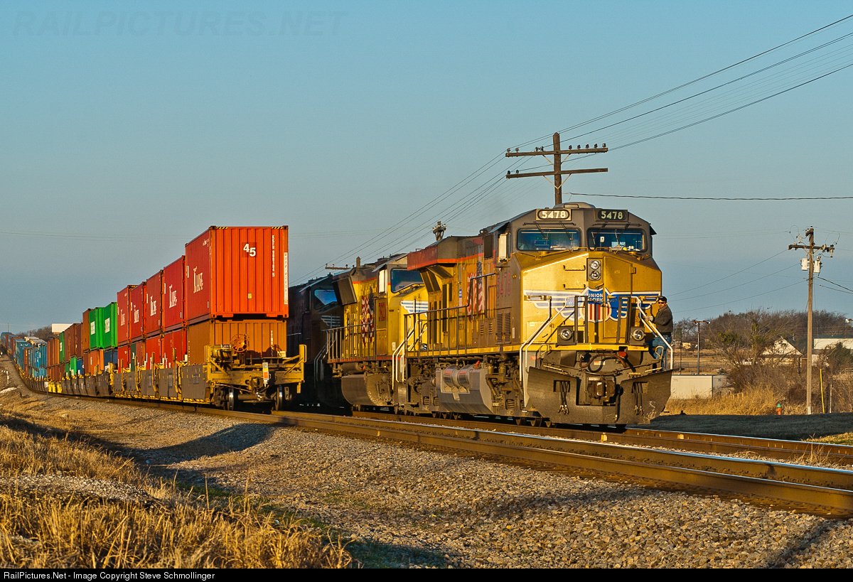 After meeting a westbound stack train at Wills Point, TX, just after sunrise, the conductor climbs back aboard UP 5478 East. The dispatcher will waste no time in giving this stack train a light. The train will head through Longview, and at Marshall, TX, keep going due east, or turn north toward Texarkana.