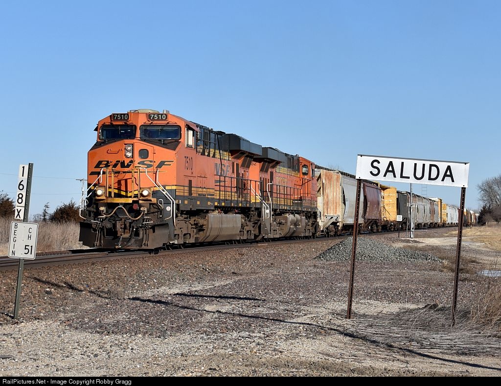 BNSF 7510 leads a manifest south at Saluda on the Brookfield Sub.