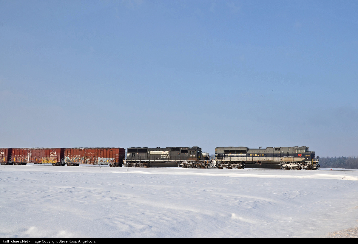 CP/NS 931 is nearing the border at Champlain, NY with the NS 1070 Wabash Heritage Unit and SD70 NS 2558.