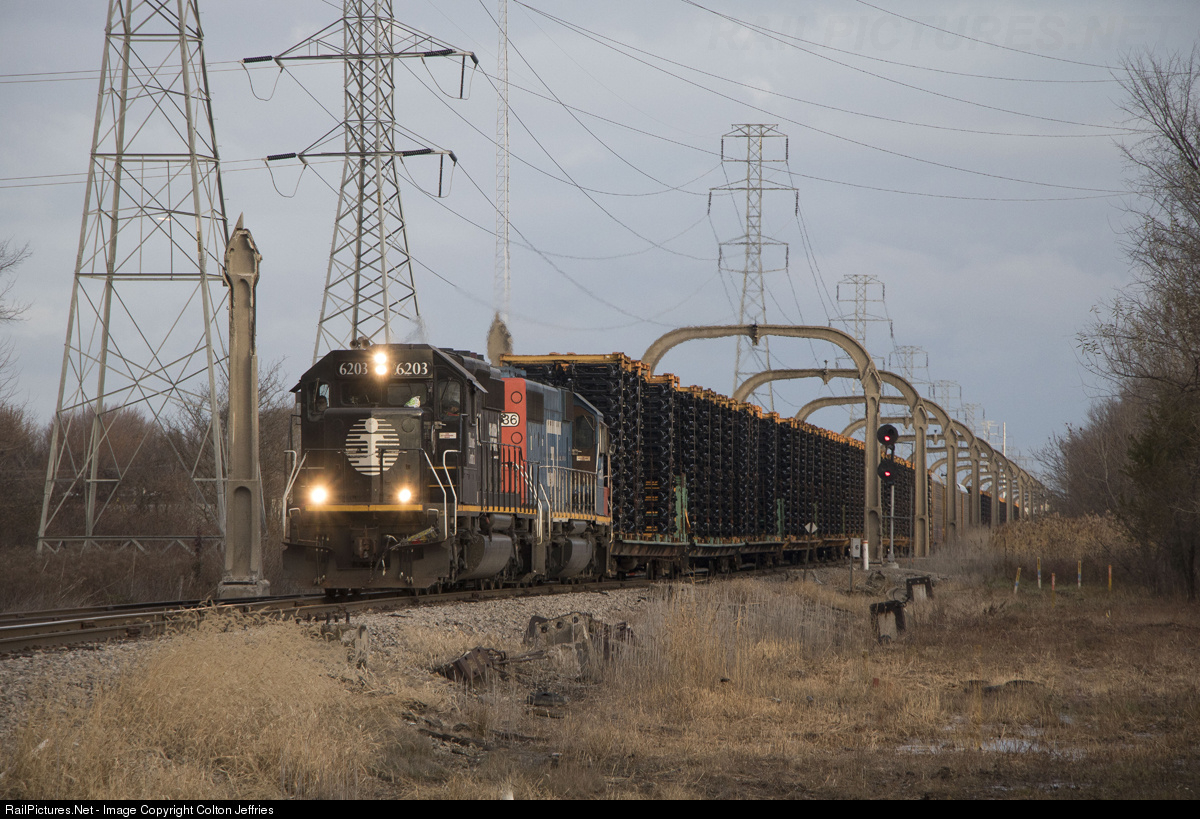 IC 6203 and GTW 5936 lead "102" under the DT&I arches back to Flat Rock after interchanging with NS at Oakwood Yard.