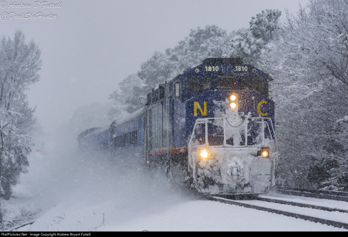 Amtrak 74 has no trouble getting through the heavy, wet snow on its journey to Raleigh.