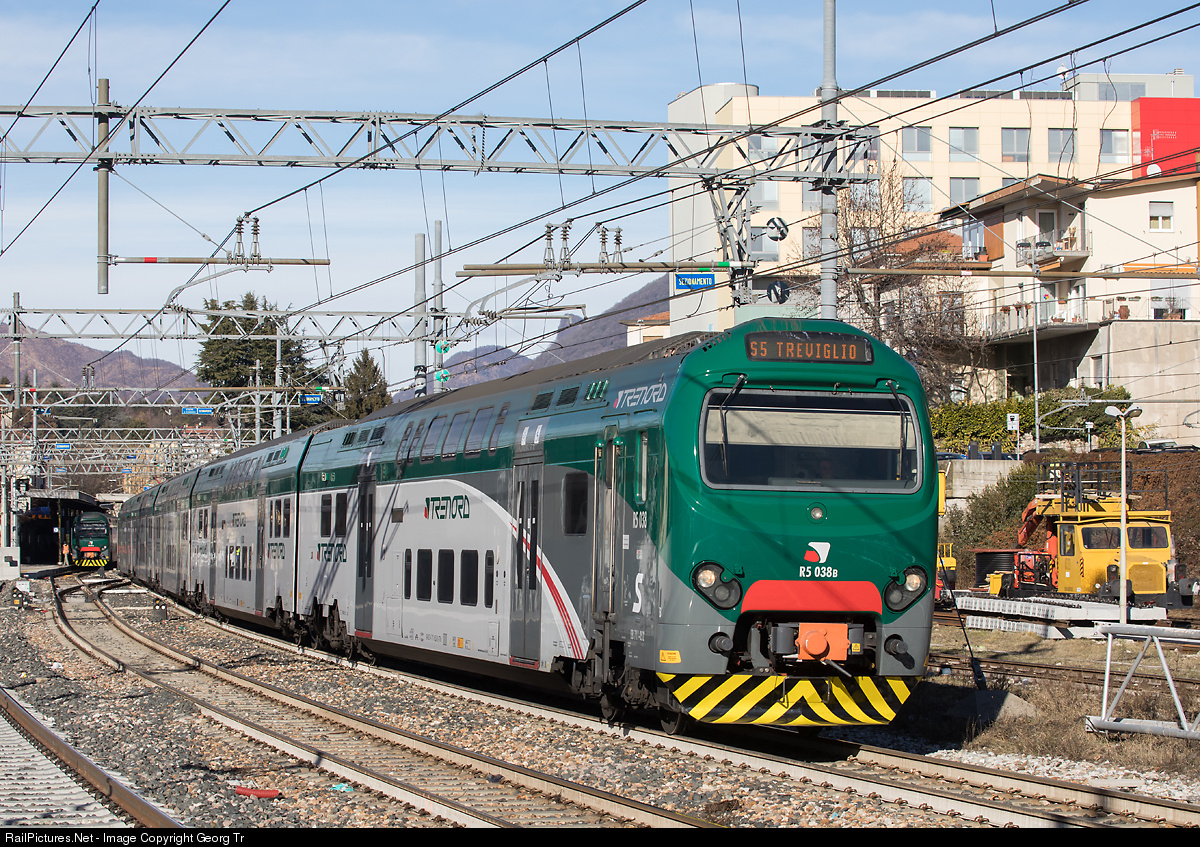 The Treno Servizio Regionale (TSR) are a series of double-decker EMUs used by the Lombard railway company Trenord for the commuter services around Milan, and particularly for the suburban lines. With leading railcar ALe 711 # 052 a 6 car TSR is leaving Varese as S 5 service to Treviglio via Milano Porta Garibaldi.