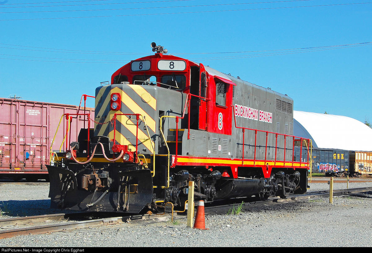 At 66 years of age and looking resplendent in a new coat of point, Buckingham Branch GP 16 #8 rests in the bright late Spring sunshine awaiting its next assignment. The unit was built to GP 7 specifications for the ACL in 1951.