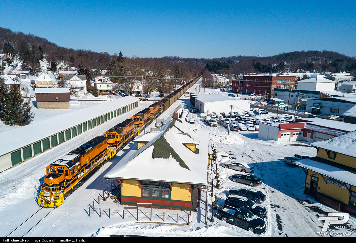 A four unit EMD lashup, with its loads of coal stretched clean out of the borough limits, rides into the Philadelphia Street crossing in downtown Indiana, Pennsylvania. I had originally been on the impression that this train operated at night, but I bumped into it at Marion Center as I was heading north in broad daylight.