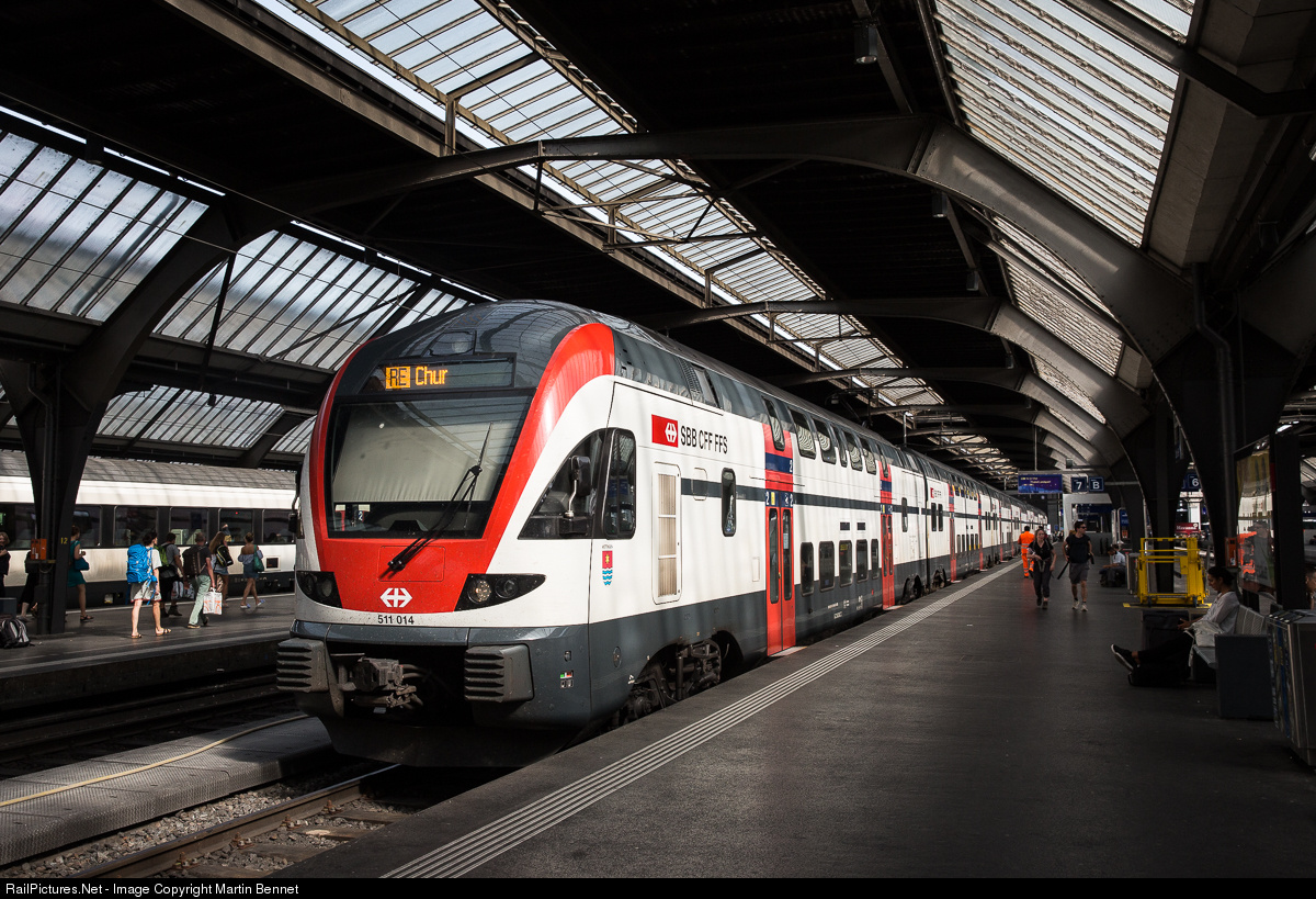 | A double deck Stadler 'KISS' EMU prepares to take me south from Zürich to Chur, where I will transfer to the metre-gauge Rhaetian Railway. |