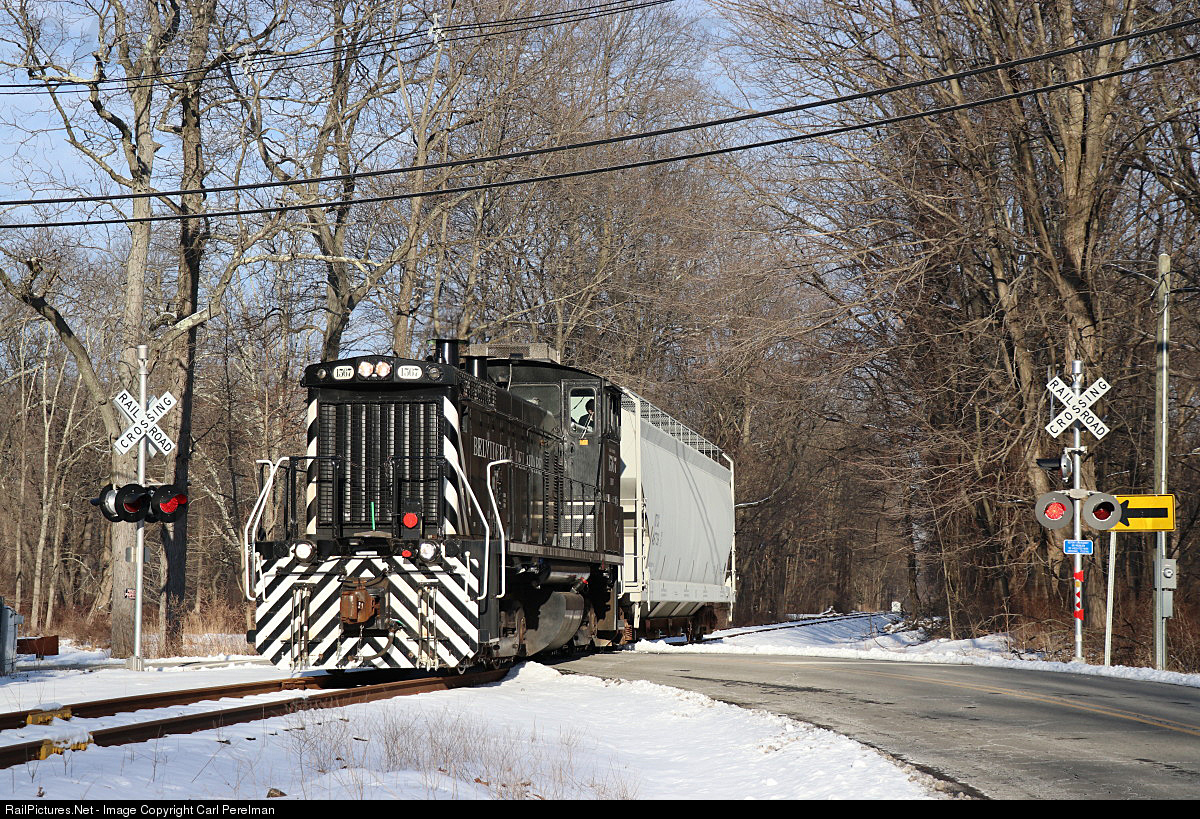 Dover & Rockaway River DO-2 has one carload of plastic pellets for Triumph Plastics in Bartley. The train is crossing Emans Road in Succasunna late in the afternoon.