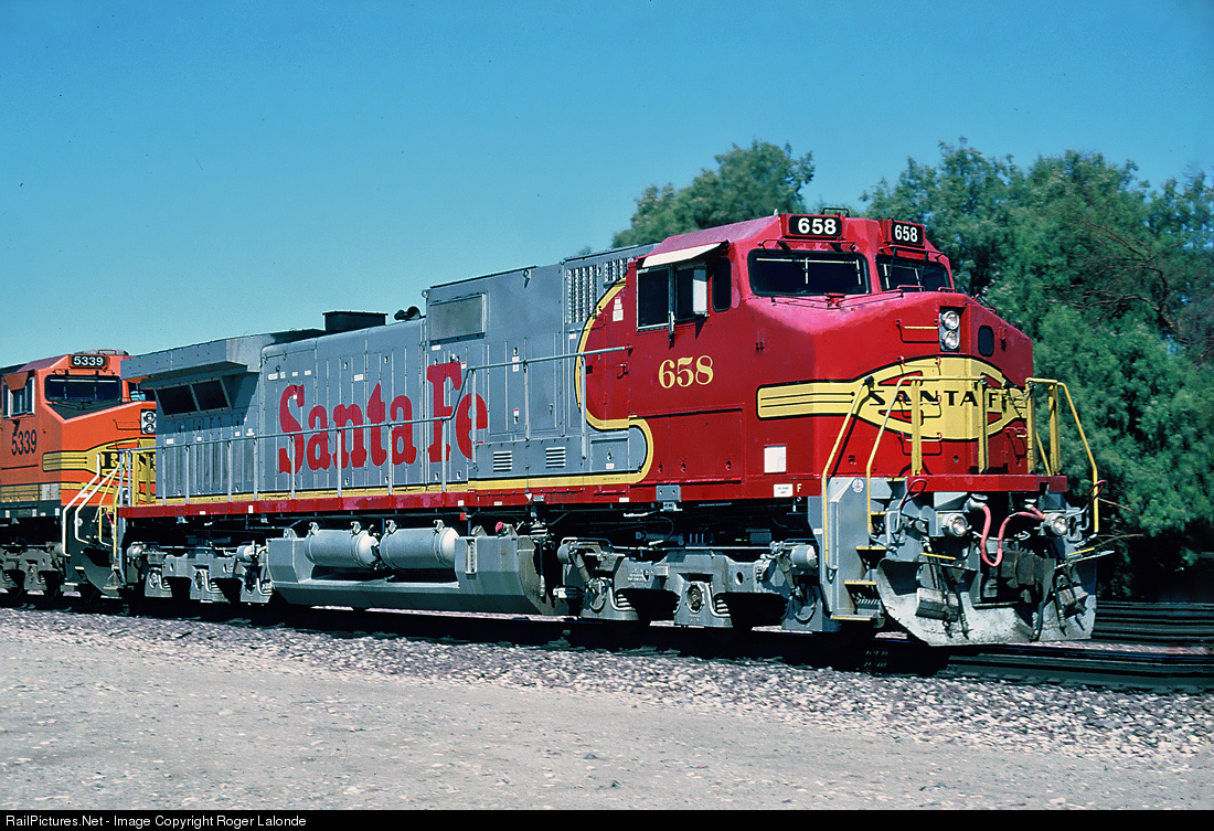 | Santa Fe GE C44-9W 658 at Needles, California on October 23, 2000. |