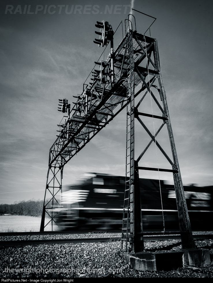 Rushing under the popular PRR PPS Signal bridge at Tipton is the lead engine of 23Z