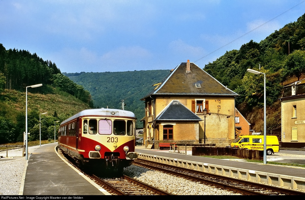 | CFL 203 / 213, on its way as train 1622 from Kautenbach to Ettelbrück has just departed from Goebelsmühle.