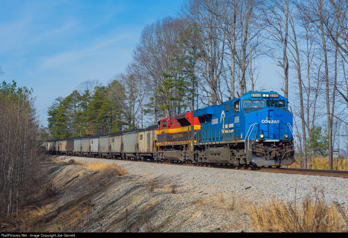 | With 170 loads of black diamonds bound for the port of Norfolk, quite the pair of locomotives leads this 810 coal train. Norfolk Southern heritage ES44AC #8098, the 'Conrail' leads Kansas City Southern SD70ACe #4054 as they run through some lovely January sunlight. |