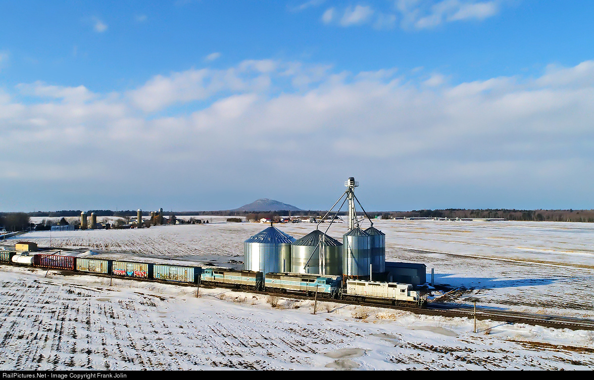Central Maine & Quebec 710 is returning to Farnham Yard after having picked up traffic at the interchange with Canadian Pacific at Iberville.