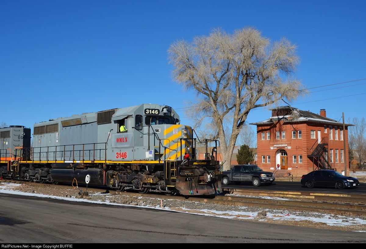 | OmniTRAX's 3146 (SD40-3) operates in a small BNSF yard on the north side of Fort Collins, which is adjacent to the historic Plummer School building. The school was built in 1906 and used until abandoned in 1960. It survives today as an event center and a visual monument, representative of the rural community's school house architecture.
