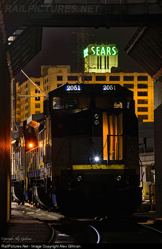 | On their last night in Los Angeles, CDTX 2051 and 2052 are seen posed beneath the 1927-built Sears, Roebuck & Company mail order building that with its well known neon letters still burning bright. The two veteran Amtrak California motors have just come off working on various Pacific Surfliner's with additional Capitol Corridor/San Joaquin equipment to help expand rail service during the closure of US 101 and will be returning to Oakland the following day. |