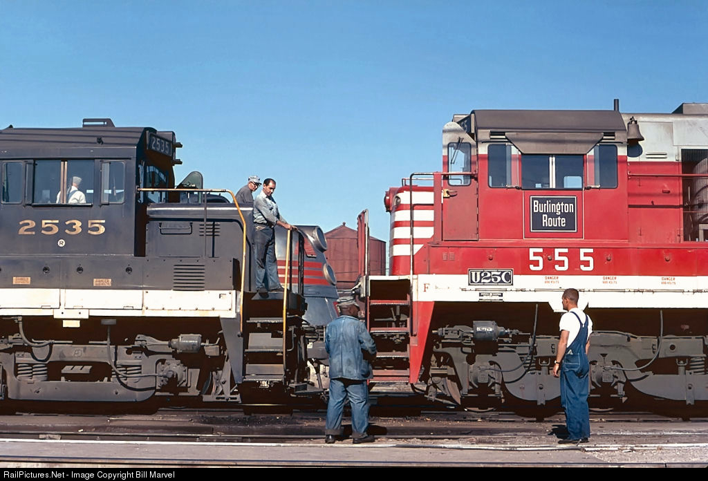 RailPictures.Net Photo: 555 Chicago Burlington & Quincy Railroad GE U28C at Denver, Colorado by Bill Marvel