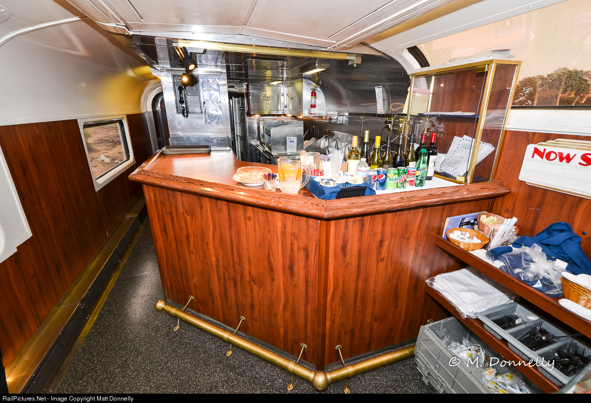 Farewell to the Pacific Parlour Cars. February 2 marked the last northbound departure and February 4 will be the last ever southbound departure before these cars are retired after 26 years of Pacific Parlour Car service. These cars started life as Santa Fe Hi-Level lounge cars, built in 1956, and only served the Santa Fe for 15 years. This shot shows the galley and bar, with wine on deck for an upcoming tasting. Farewell shirts and pins are available until 2/12/18 at https://amtrak.bnr.corpmerchandise.com/parlour2018