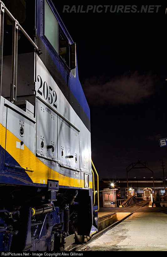 Lined For the Table. CDTX 2052's final hour at the Redondo Junction turntable has come to a close as the venerable 1927-built, original Santa Fe structure is lined for the Amtrak California motor to come onto before joining sister 2051 for the trip home to Oakland the following day. The two Dash-8's have served Southern California for more than a week on expanded Pacific Surfliner trains during the closure of US 101 in Montecino following the deadly mudslides there.