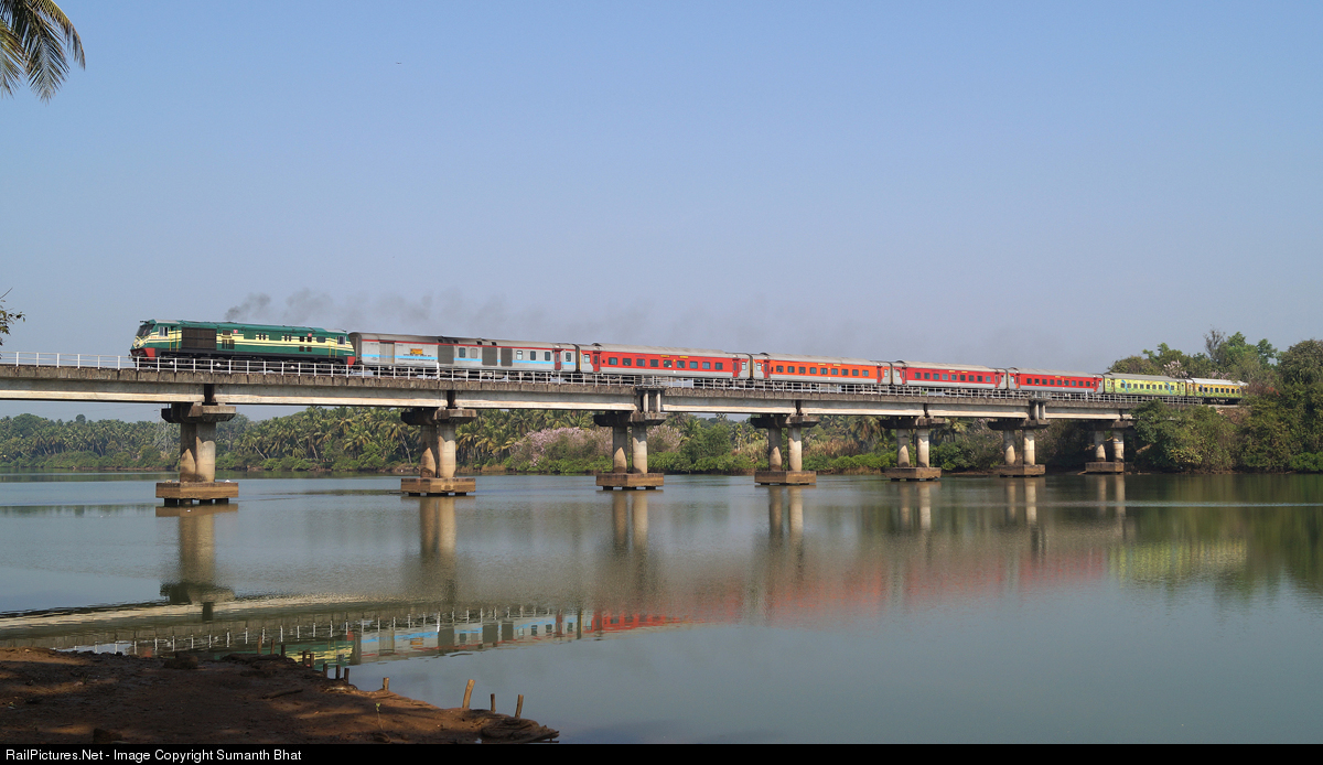 12223 Mumbai-Ernakulam Duronto Express crossing Swarna river led by Kalyan WDP3A 15518.