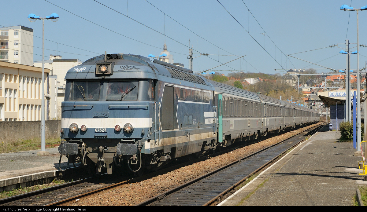 | BB 67523 waits in Boulogne-sur-Mer for departure with an Intercité bound for Paris. Change to an electric loco will take place at Amiens |