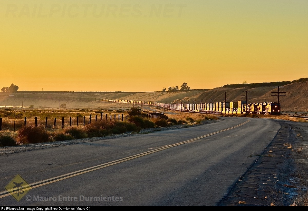 | Late afternoon in Ilmon, near Bakersfield, with a southeastbound BNSF intermodal train by Tehachapi Pass. |