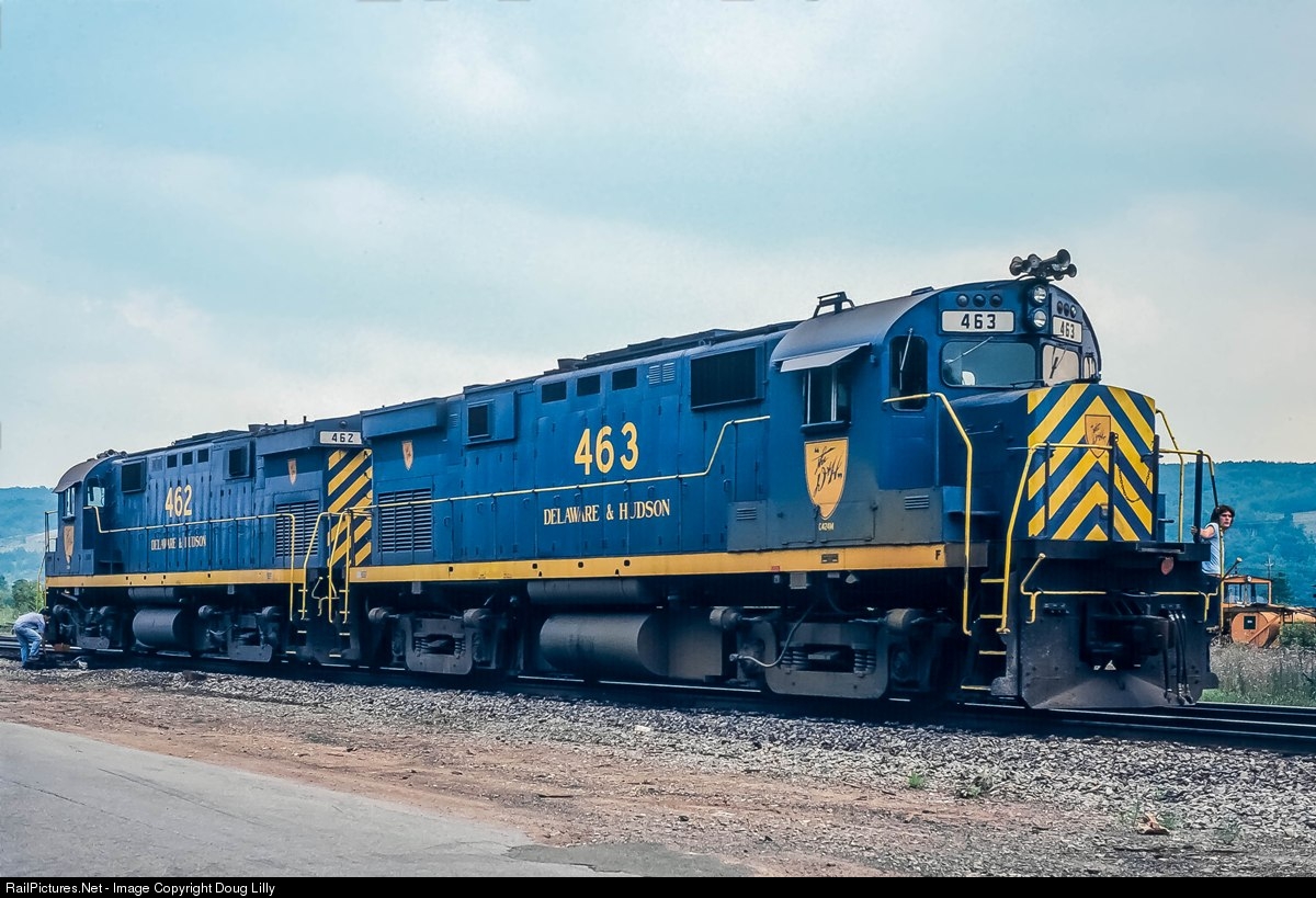 The westbound Delaware & Hudson salt train, carrying empty covered hoppers for the Genesee & Wyoming, has arrived at Hornell, New York with three recently-rebuilt C424m’s leading. Because of a reverse move to reach the G&W yard, two of the Alco’s are being repositioned to the rear of the train, and will act as helpers for the remainder of the trip to Griegsville, New York.