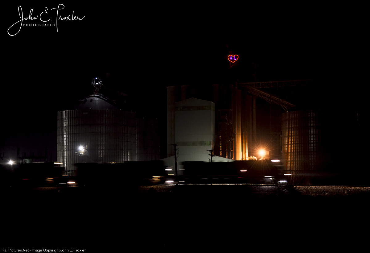 | Two teenage girls were murdered approximately one mile from this location 1 year ago. The Andersons grain elevator in Delphi, IN erected a heart felt tribute to the victims, Abby & Libby. Norfolk Southern stack train 21T passes by Andersons 1 year after their deaths. |