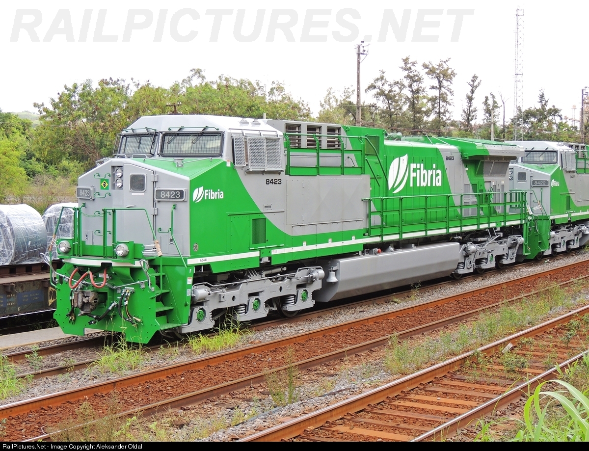 | New locomotive waiting for MRS train to continue trip to São Paulo and there, to be delivered to the company RUMO. |