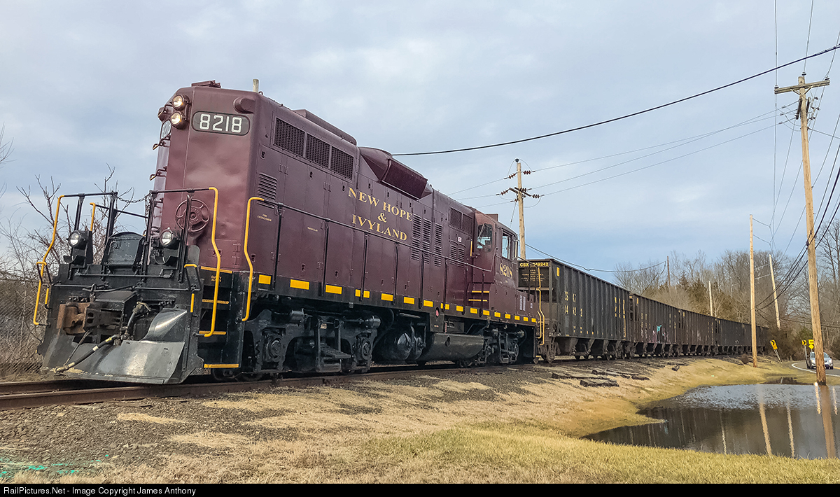 New Hope Freight? No, just Pennsylvania Northeastern using New Hope power since PN is short a engine, seen here is the Rushland Quarry Job, which they use an old tipping platform to Dump Stone from Truck's into the train, this has been going on since the early 80's, but is now a rare occasion.