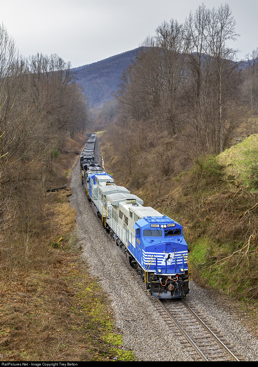 | The NS 4001 and NS 4000 "DC to AC" units lead the NS 757 north to Roanoke on the return trip from the first revenue run of these units to Belews Creek Steam Station. The Winston-Salem District was used extensively by NS to test these Conversion units, making many trips between Roanoke and Belews Creek Steam Station on coal drags. |