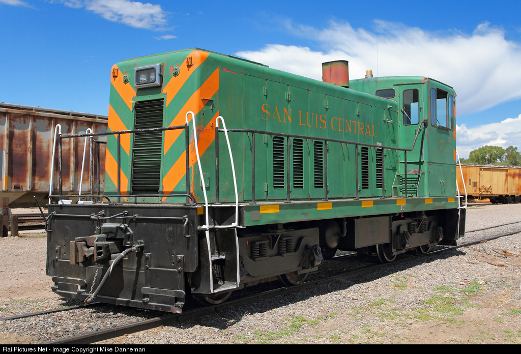 San Luis Central GE 70-ton No. 71 sits in the railroad’s small yard at Sugar Junction just east of Monte Vista, Colorado, on September 1, 2013. This locomotive was bought by SLC in 1955 and replaced the short lines only steam locomotive, a 1913 Baldwin 2-8-0 named “Little Nell” that first operated on the railroad in January 1914. Both locomotives were purchased new, serving the railroad admirably for over 100 years!