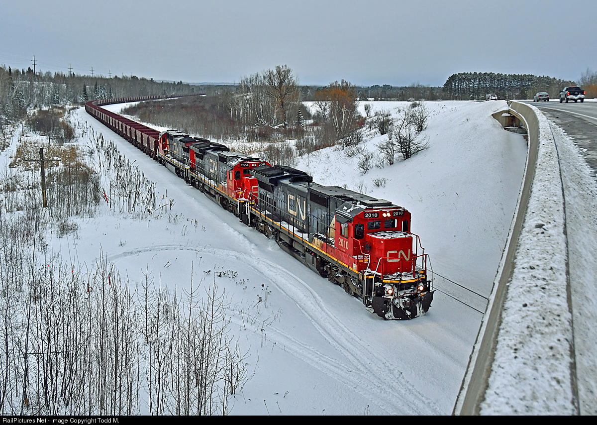 | The new kids on the block. CN has been looking to replace their aging EMD fleet in the ore pool and this seems to be their solution. These ex-C&NW C40-8s have been modified with straight air controls to work the Orinoco system found on the ore car fleet.