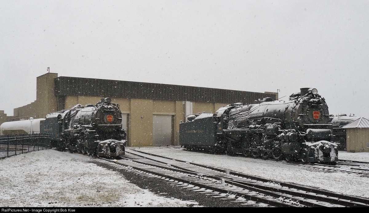The Pennsy K4 and M1, jacketless for some time, are weathering the elements in the first major snowfall of December, 2017. There is hope for progress in the future; restoration funds have been raised, and there are plans to build a roundhouse. When will these projects begin? Time will tell.