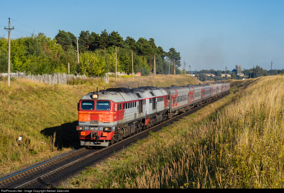 | Diesel-electric locomotive 2M62U-0168 (max power - 4000 hp, max speed - 100 km / h) drives passenger train №425 from Chelyabinsk to Kaliningrad. This train passes the ancient Russian city of Kozelsk founded in 1146 (a year older than Moscow). In 1238 Kozel'sk received the nickname "Angry City" because for seven weeks the Mongol-Tatar troops could not take it by assault.
