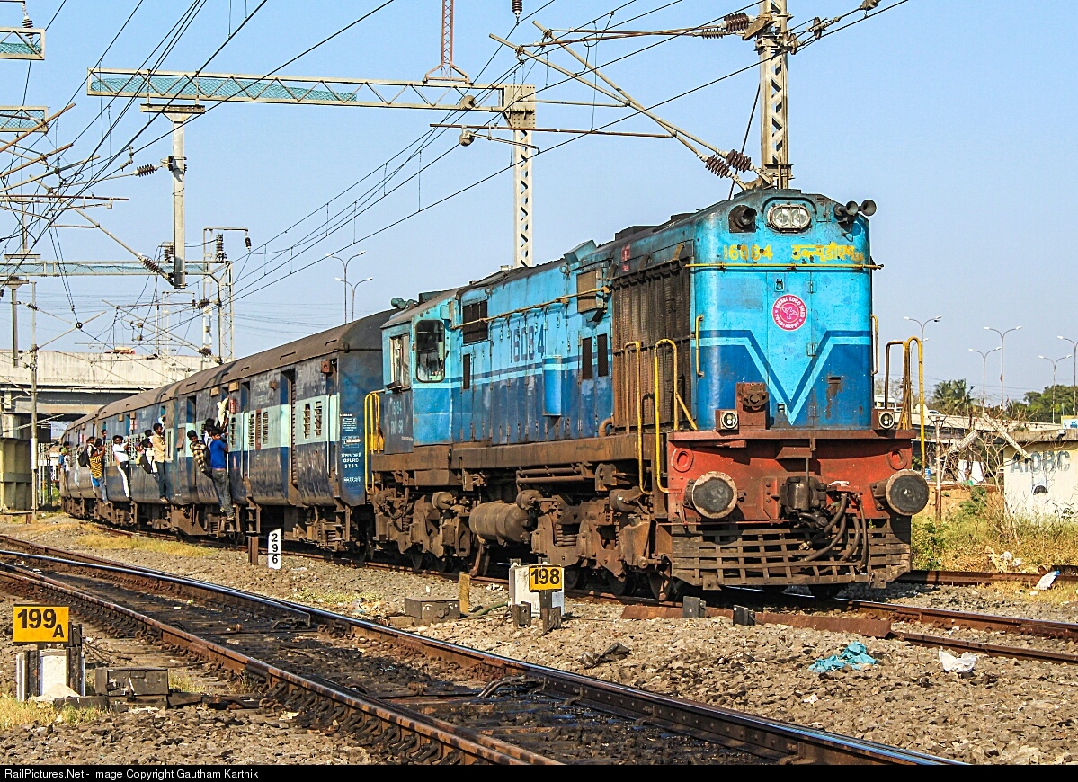 | Tondiarpet WDM-3A glows in the evening light and exits Tambaram hauling 16105 Chennai Egmore-Tiruchendur express. |