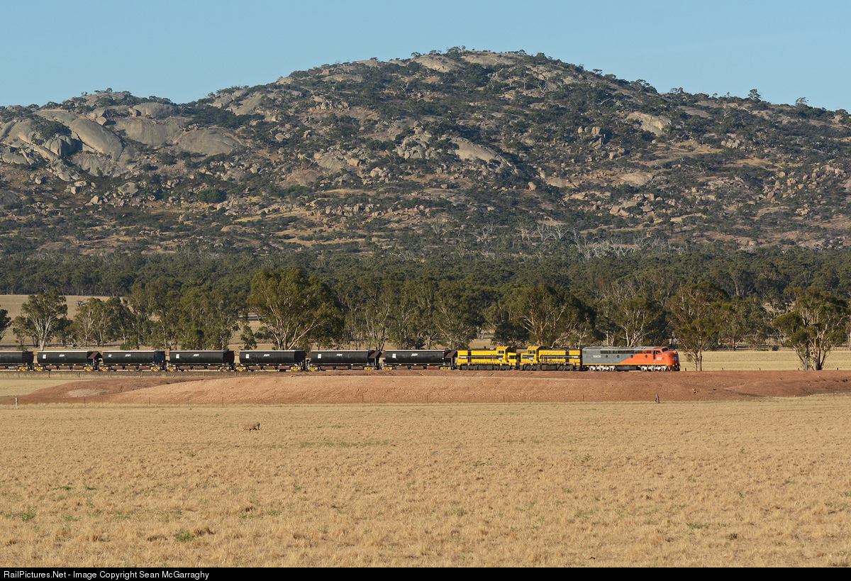 | SSR's Allied grain train is seen here pulling past Glenalbyn with 9198 loaded grain from Charlton. S302, T381 & T386 have been given the honours of taking the train to Kensington Grain Terminal in Melbourne's inner suburbs. |