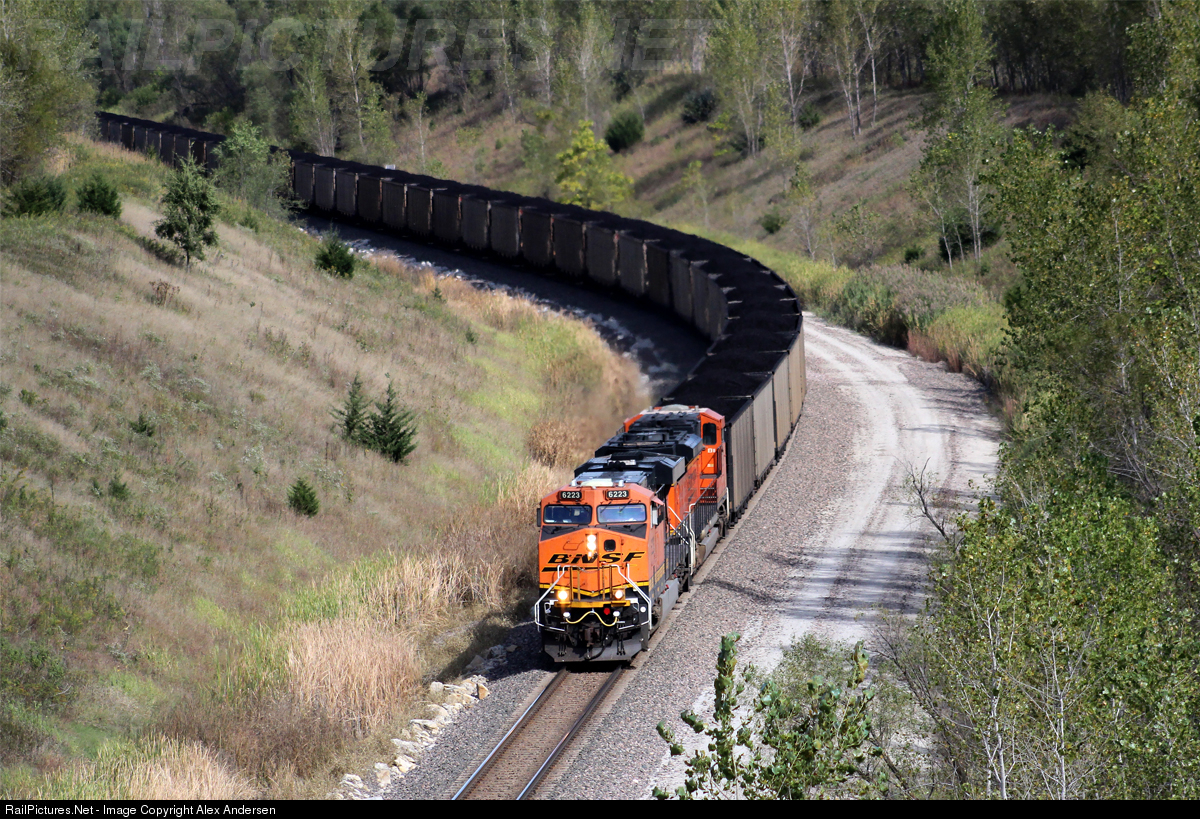 BNSF 6223 & 8529 work their way up Firth Hill with a coal train.