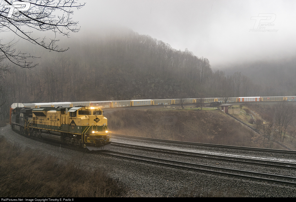 A westbound autorack train climbs the mountain with a little Reading Company on the head end. The PRR and Reading weren't the best of friends, though their rivalry didn't quite match the animosity between the Pennsy and New York Central.