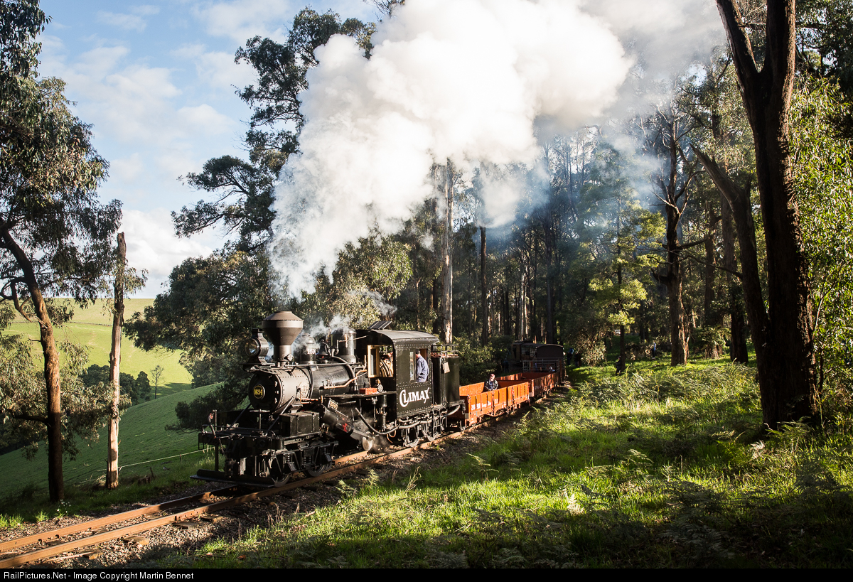 Climax No.1694 climbs the 1 in 30 Fielder Bank, on a photographer's charter to Gembrook organsied by Sierra Publishing. 1694 spent it's working life on the Tyers Valley Tramway in Victoria's Gippsland District until the line closed in 1949. The locomotive now resides at the Puffing Billy Railway, and is only used for special events. Watch some video of 1694 in action here: https://youtu.be/NI0Tn4RmUeQ