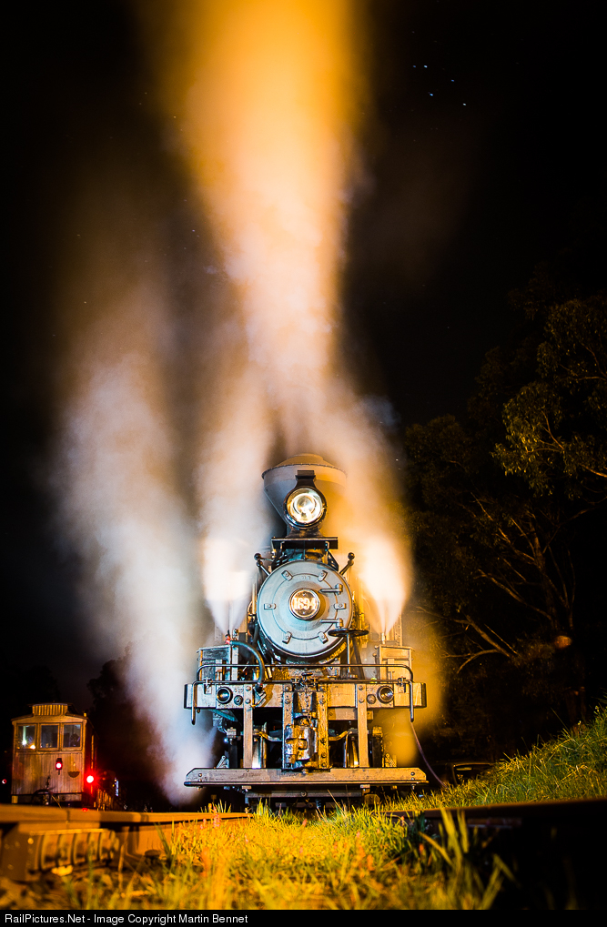 Climax No.1694 takes water at Cockatoo, with a photographers' special chartered by Sierra Publishing. 1694 was built in Pennsylvania in 1928, being delivered to Victoria in kit form and assembled at Newport workshops in five days. It then spent it's working life on the Tyers Valley Tramway in Victoria's Gippsland District until the line closed in 1949. You can watch some video of this loco working here: https://youtu.be/NI0Tn4RmUeQ