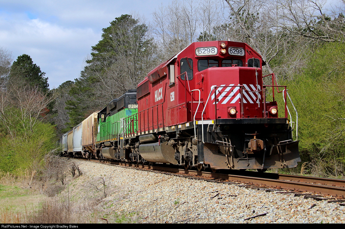 | Alabama & Tennessee River Railway (ATN) Train Z389 heads North to Gadsden, AL. as they pass through Queenstown, AL. With a pair of HLCX SD40-2's ATN has just purchased |