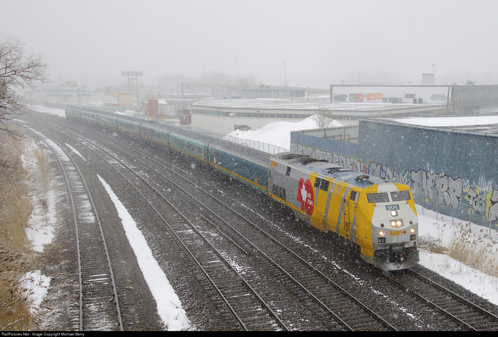 | From 150 to 40. VIA 904 has a logo celebrating VIA Rail's 40th anniversary, as rolling stock previously wrapped for Canada's 150th anniversary in 2017 is slightly modified. It is leading VIA 37 which is heading through Montreal West on a snowy afternoon with a Renaissance consist. |