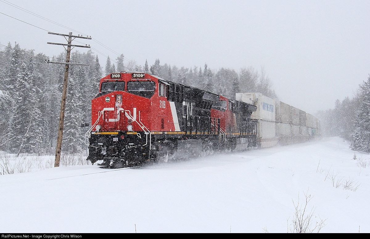 RailPictures.Net Photo: CN 3109 Canadian National Railway GE ET44AC at Armstrong, Ontario, Canada by Chris Wilson