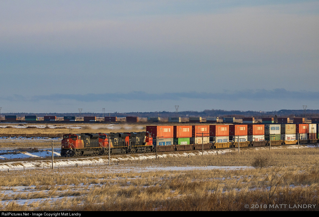 CN 8838 leads eastbound train Q120, as they pass in front of Fort Beausejour, New Brunswick, approaching the New Brunswick/Nova Scotia border. The 90 degree curve of the track adds a nice affect to the shot, especially with trains that are 12,000+ feet long.