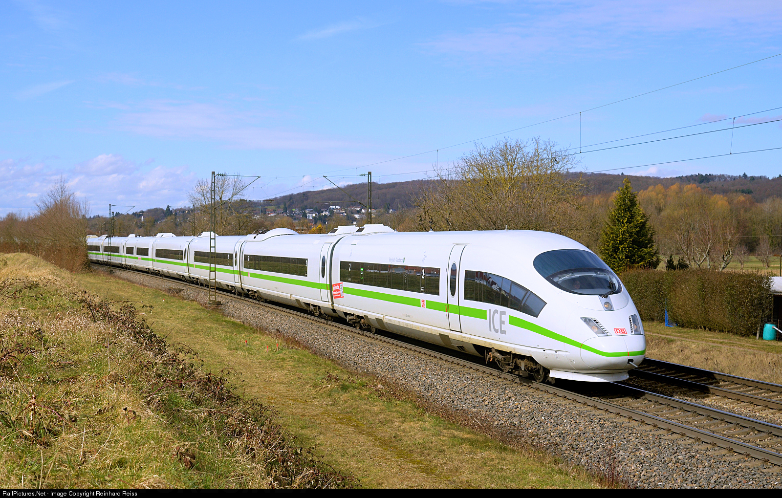 | ICE 3 403 514/019 with a green ribbon instead the usual red one (promoting the use of "green energy") rushes to Bâle. |
