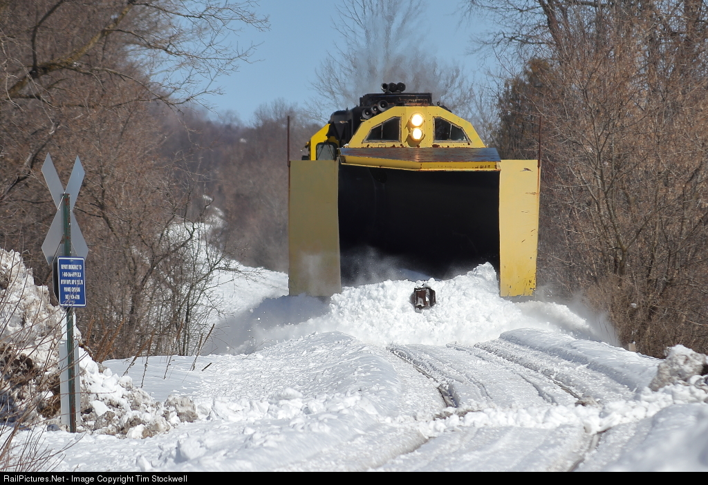 An NYS&W plow train approaches Waterville, New York on its southbound trip from Utica. After reaching Sangerfield, the train will scurry back north.