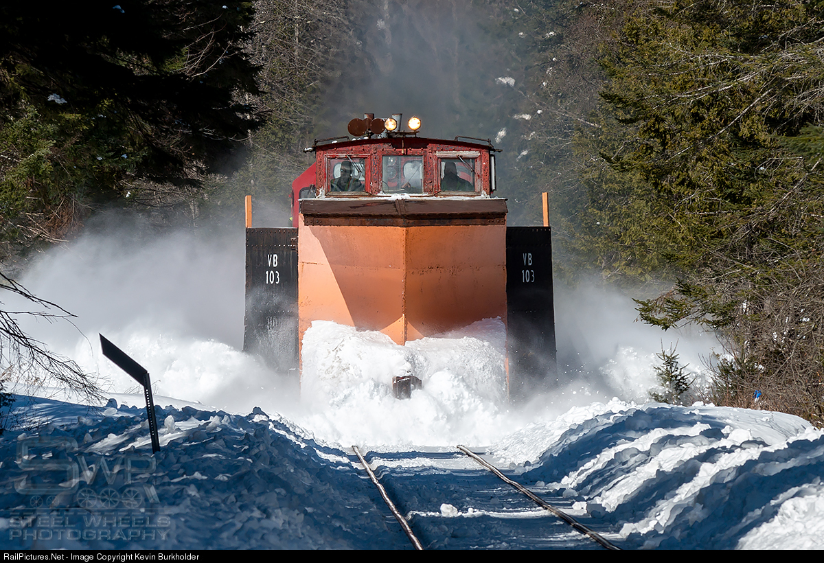 First minutes of Spring 2018 seemed like the perfect time for a little Spring cleaning on the Vermont Rail System's Washington County Railroad Lyndonville Subdivision. Just 20 minutes from the 'official' Spring arrival, VRS Washington County plow extra clears several feet of accumulated snowfall along the right-of-way with Clarendon & Pittsford GP40-2 306 shoving borrowed Central Maine & Quebec (ex-CP) plow - VB-103.